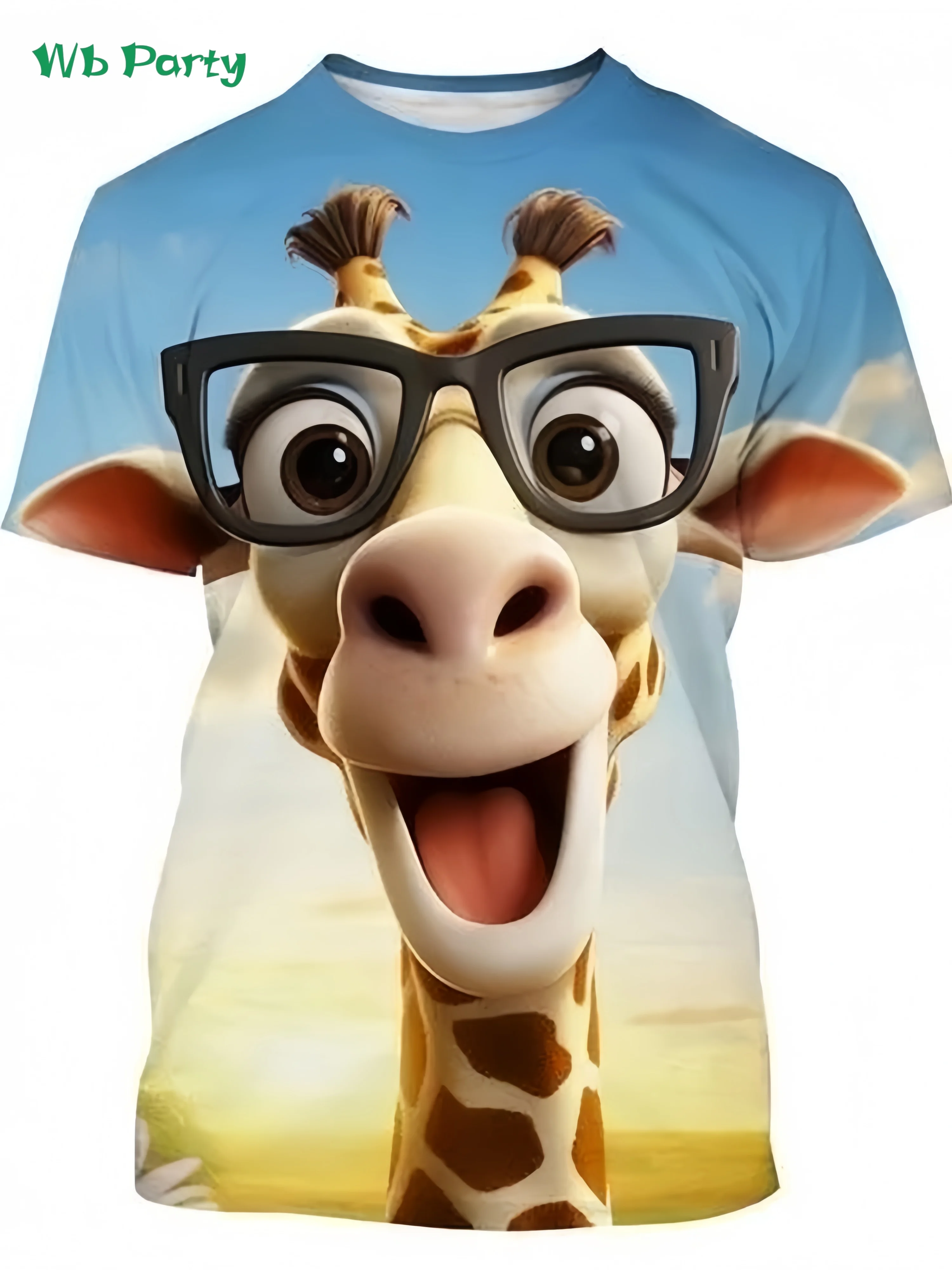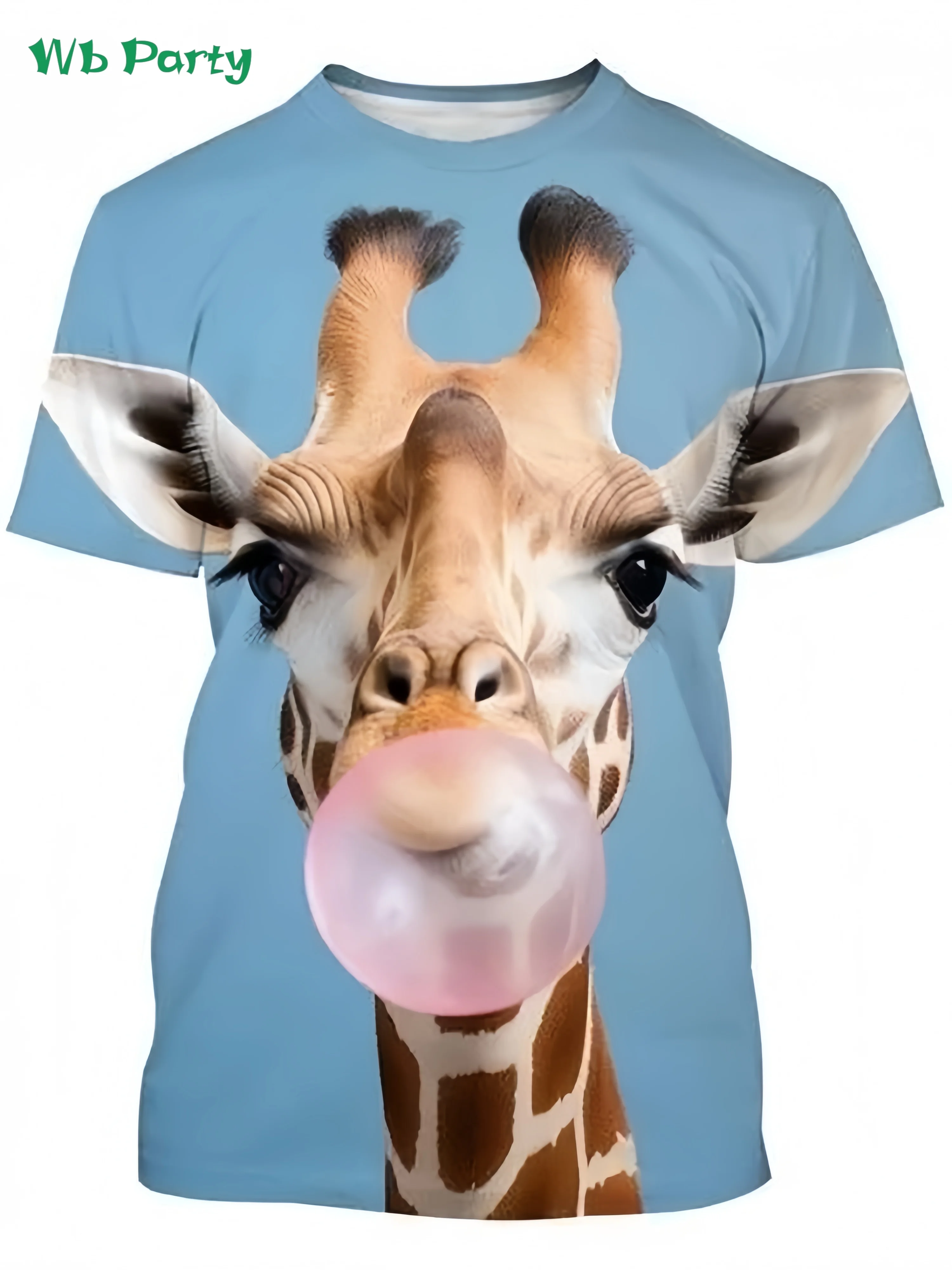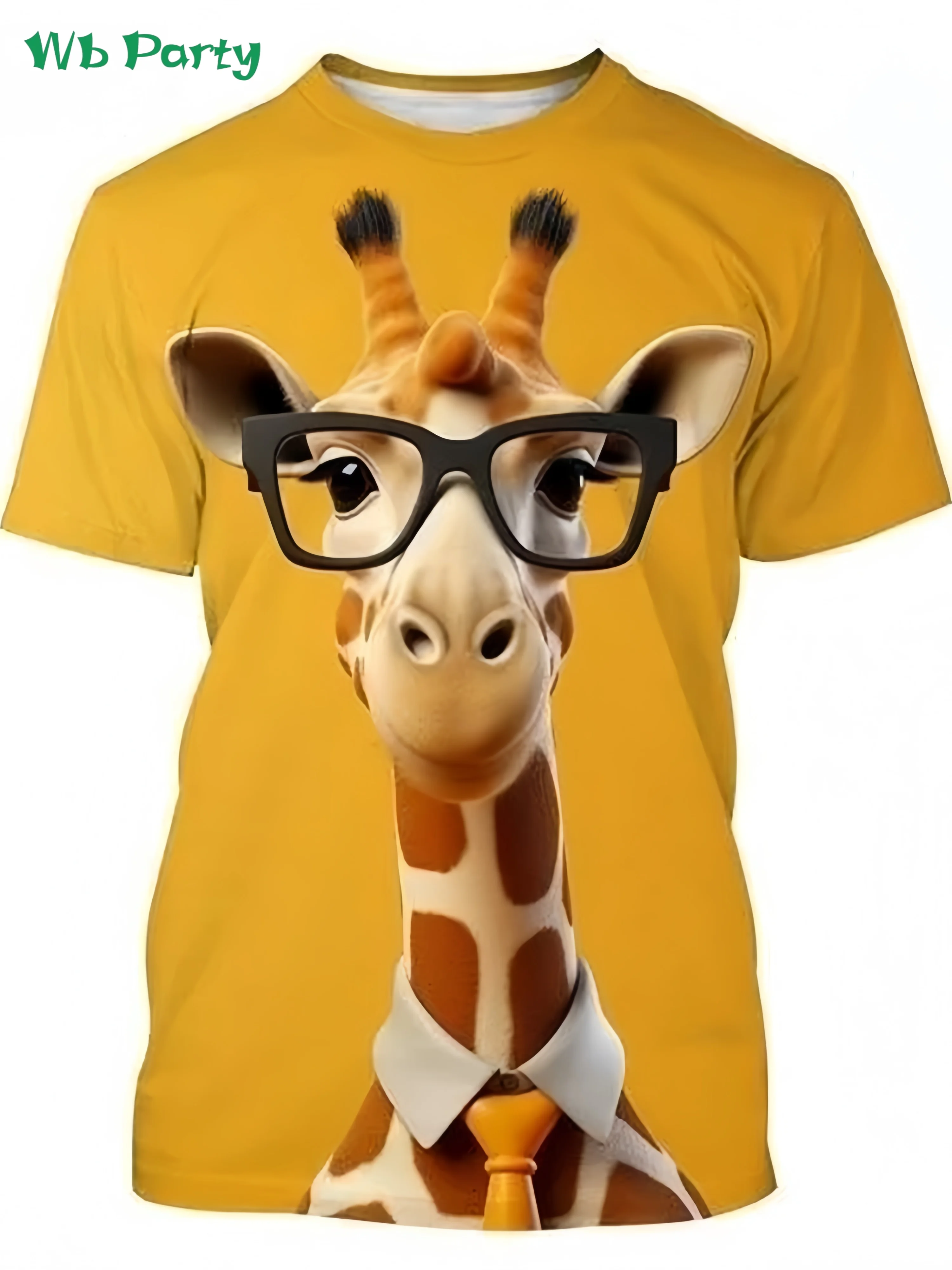 Cute Cartoon Giraffe Men’s T-Shirt Summer Outdoor Men’s Top Fashion Breathable Men’s Clothing Casual Round Neck Men Short Sleeve