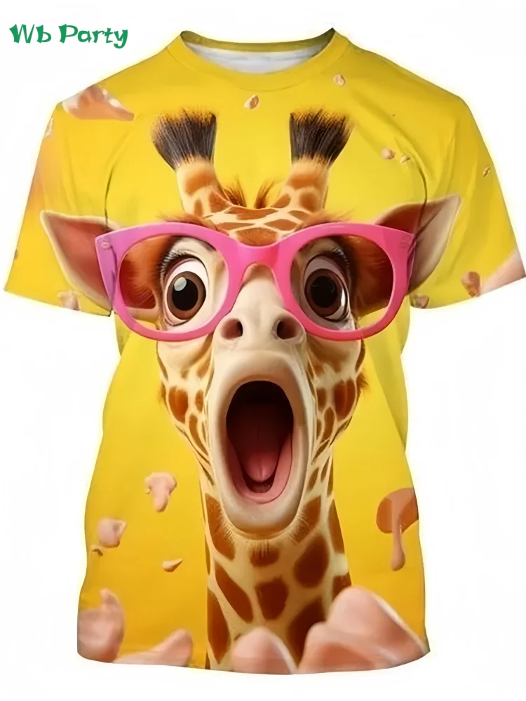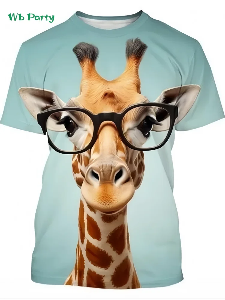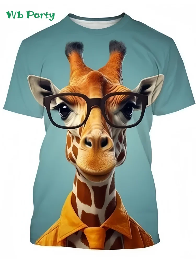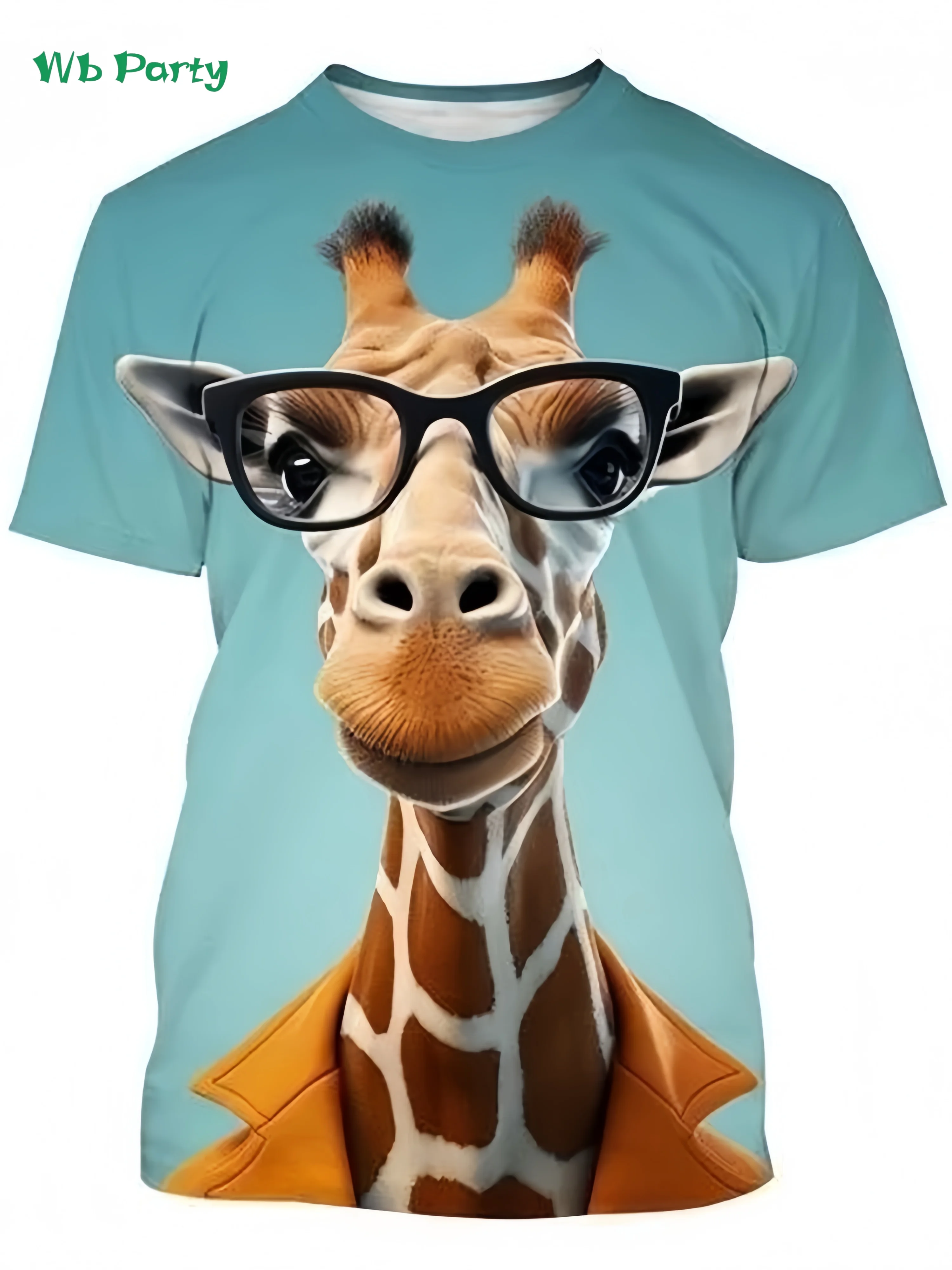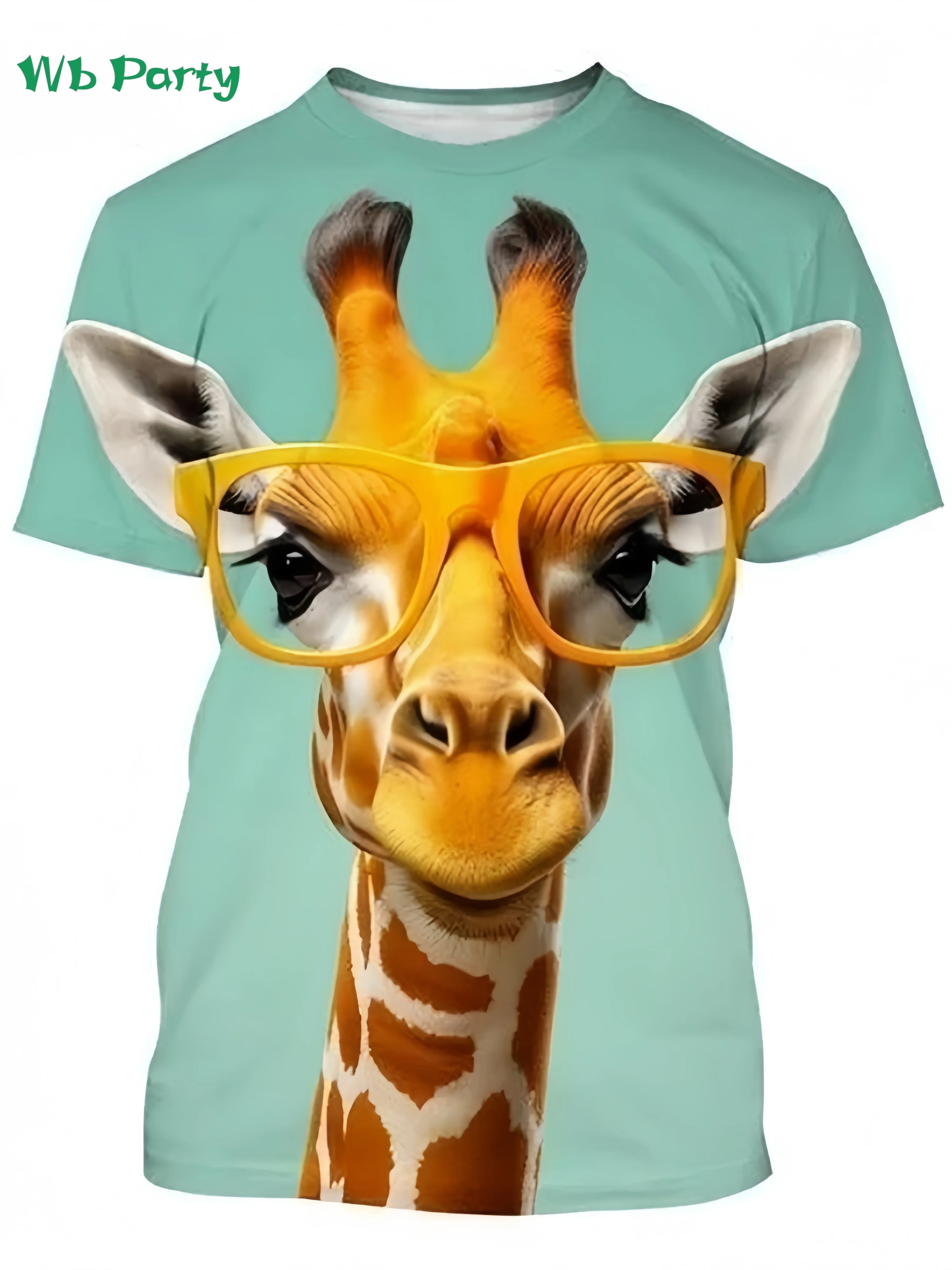 Cute Cartoon Giraffe Men’s T-Shirt Summer Outdoor Men’s Top Fashion Breathable Men’s Clothing Casual Round Neck Men Short Sleeve