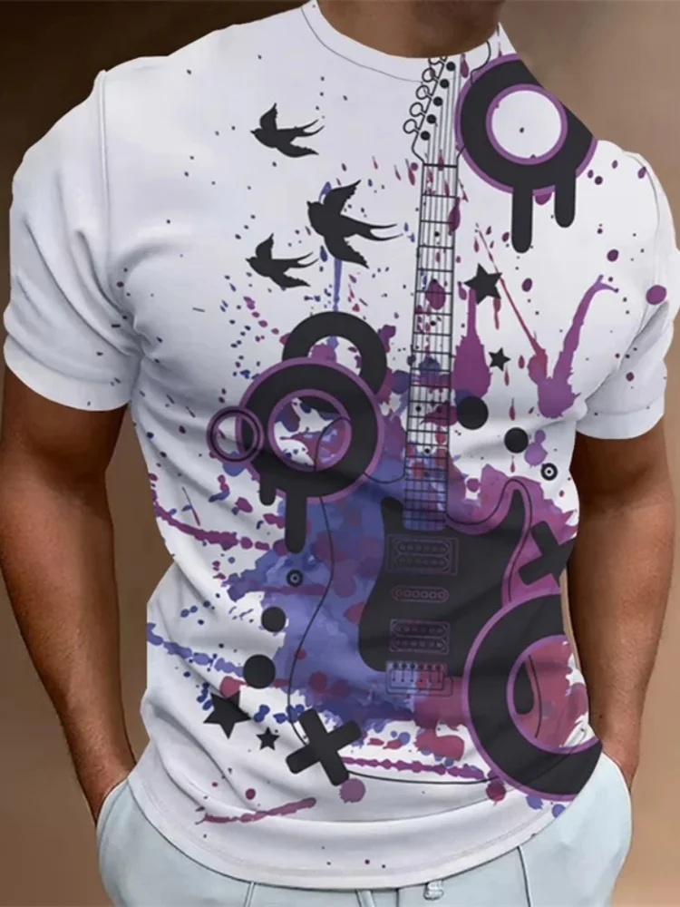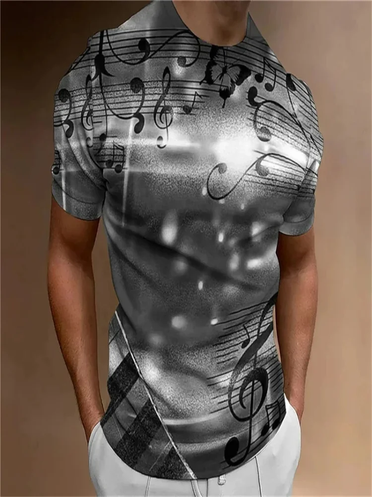 Men T-Shirt 3D Music Notes Printed Graphic T -Shirts Daily Casual Short Sleeve Street Designer Tees Top Oversized Men Clothing