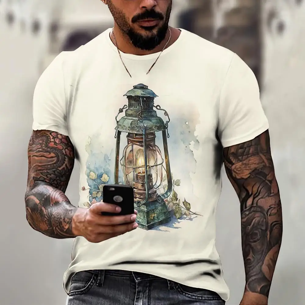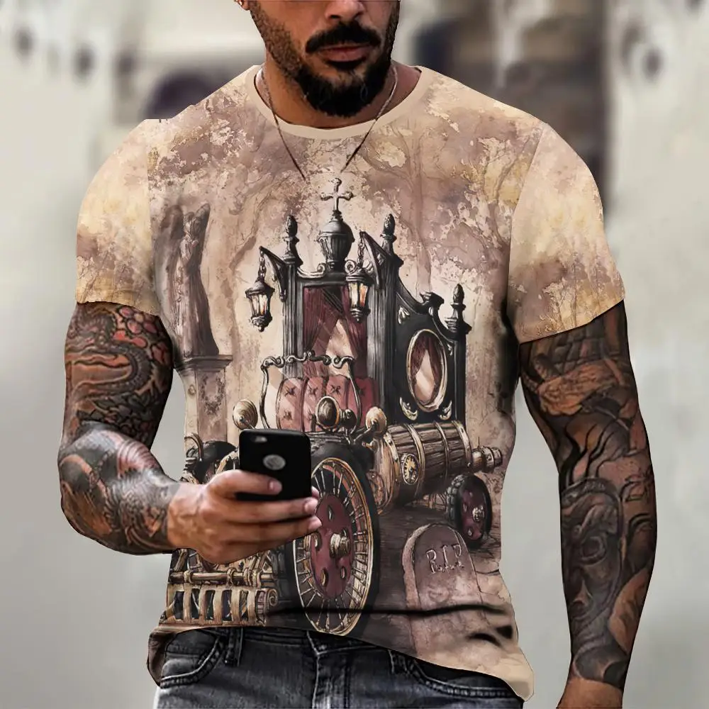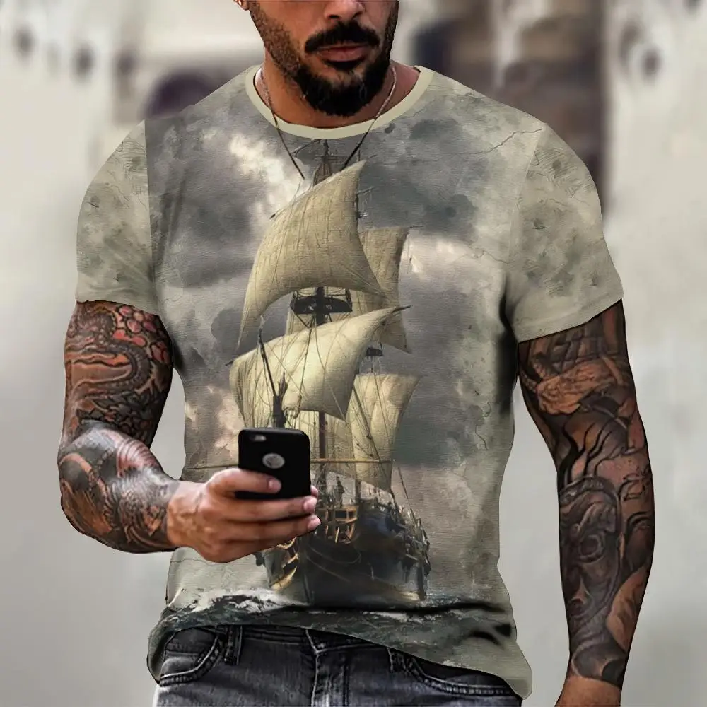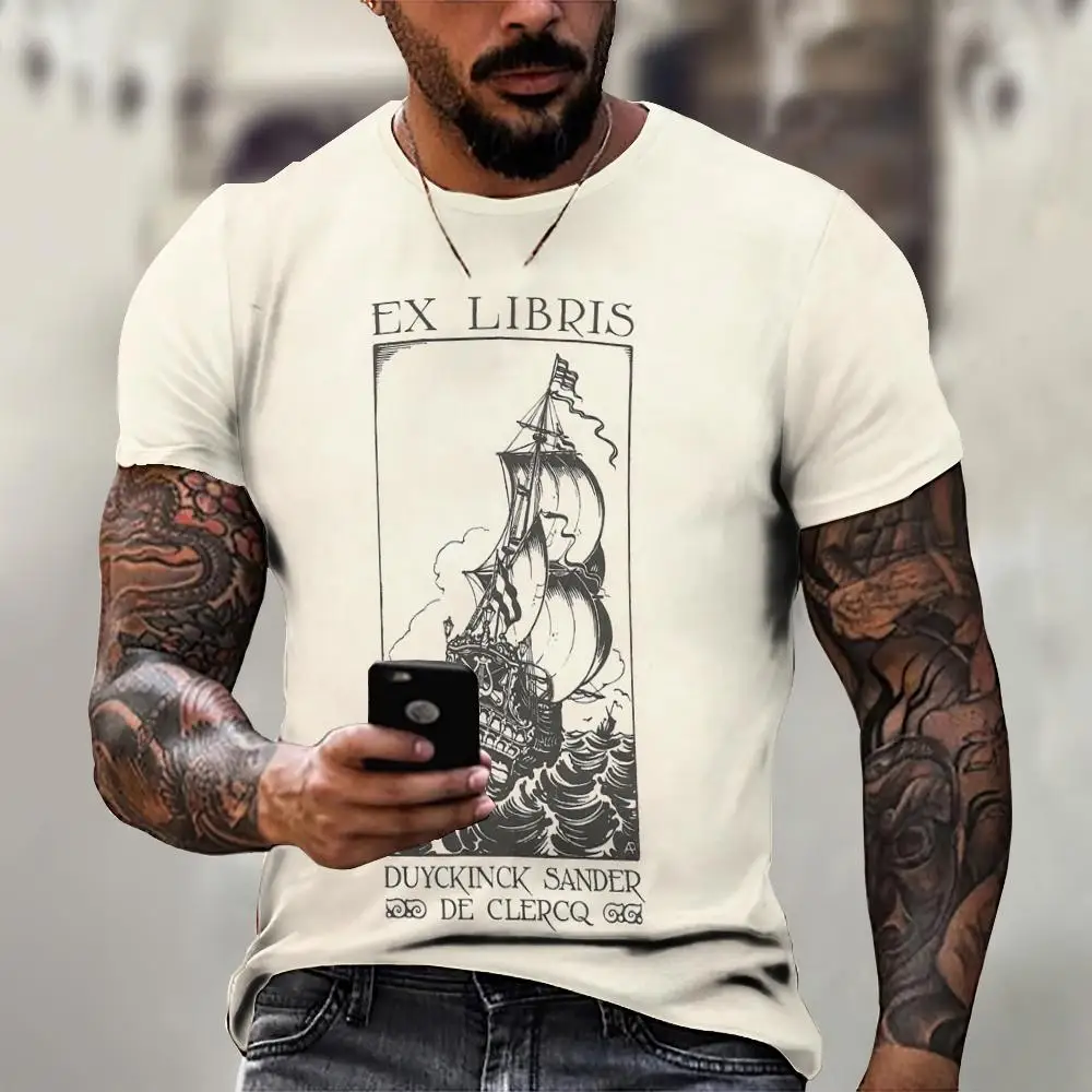 Vintage Men’s T-shirt Ship Anchor Shirt Tops Compass Printed Short-sleeve Tees Loose Daily Men Clothing Casual Streetwear